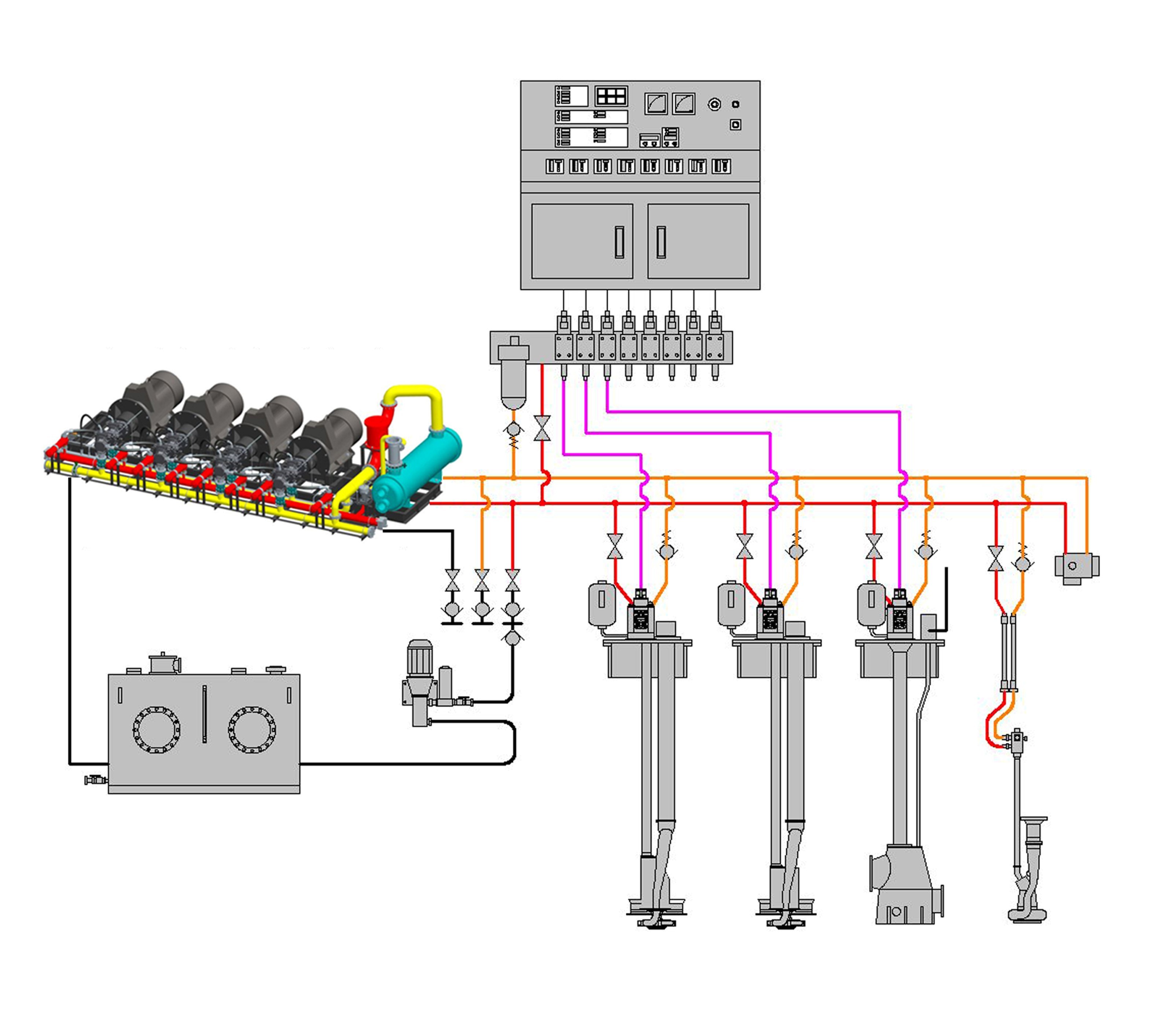 WMMP潛液泵系統(tǒng)以液壓驅(qū)動的潛液式貨油泵為基礎(chǔ),系統(tǒng)組成主要包括各種用途的潛液泵、液壓系統(tǒng)、電動系統(tǒng)以及系統(tǒng)附件,特別適用于化學(xué)品船、成品油船、FPSO等各類液貨船,可以安全、高效、靈活地處理各種液貨。同時,WMMP潛液泵系統(tǒng)能夠高效地進(jìn)行掃艙和洗艙,能夠滿足不同液貨的高效轉(zhuǎn)換。
