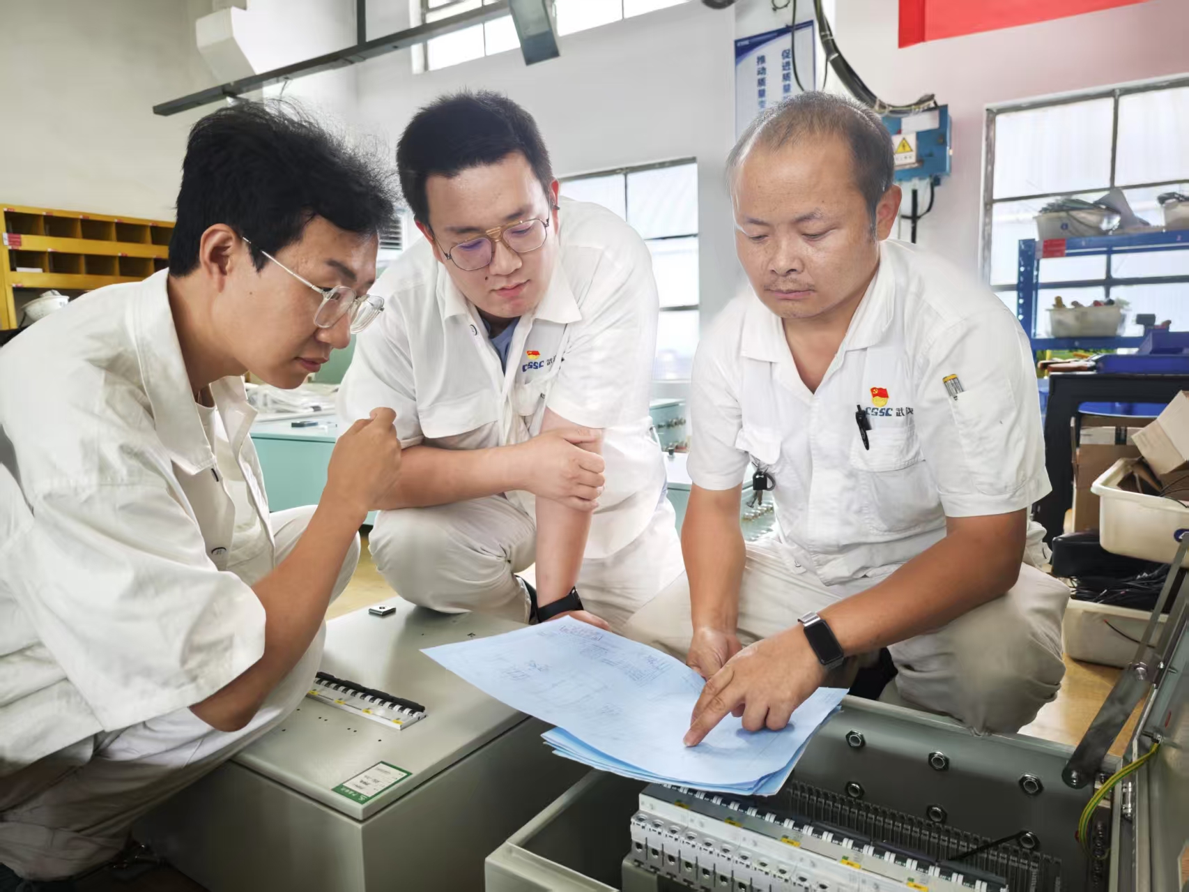 黨員帶頭,攻堅克難。電工組長何國虎,作為一線黨員、技能骨干,在完成某重點產(chǎn)品階段性試驗后,挺膺擔(dān)當(dāng),及時趕回部門支援電控箱生產(chǎn),與組員吳天賦、李珉驍、袁菁菁、李江濤等一起趕進(jìn)度、保節(jié)點。面對小組青年員工對新產(chǎn)品、新工藝裝配經(jīng)驗欠缺的情況,何國虎充分發(fā)揮黨員先鋒模范作用,提前借出圖紙,利用工作間隙,帶頭示范正確裝配流程,傳授工作經(jīng)驗。通過團(tuán)隊共同努力,小組成員在一個月內(nèi)完成了多個重難點項目,節(jié)點實現(xiàn)率100%。