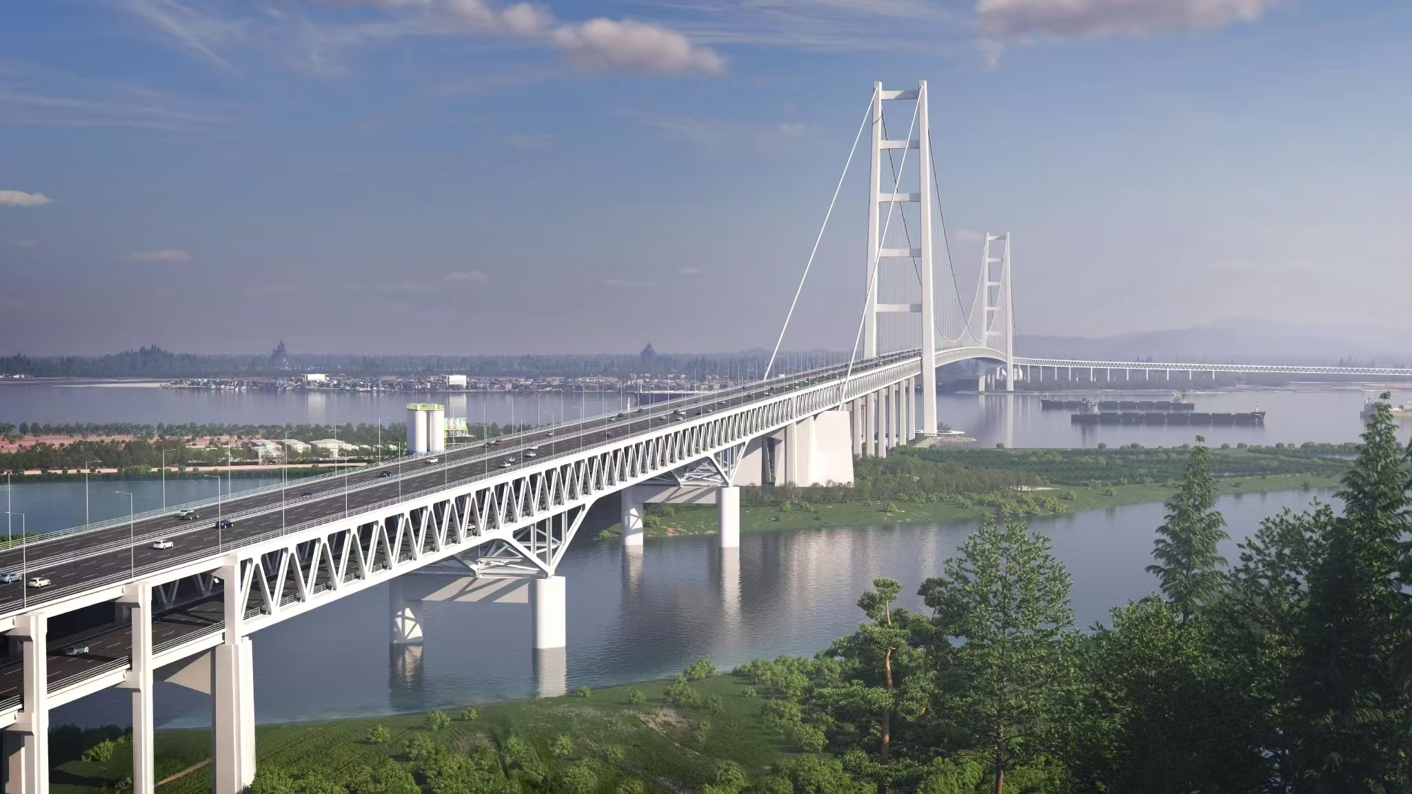 獅子洋大橋超大型索鞍、索夾制造工藝研究:廣東獅子洋大橋采用主跨2180米雙層鋼桁梁懸索橋的方案“一跨過江”,創(chuàng)下多項世界第一紀(jì)錄,主纜纜力達到數(shù)萬噸。武漢船機技術(shù)團隊深度參與該項目設(shè)計研究,在超大型索鞍制造工藝研究、主索鞍頂推性能研究、大直徑索夾研制等課題研究工作中進行技術(shù)攻關(guān),突破了索鞍高強度鋼材應(yīng)用、高強索鞍滑動副研制、特大直徑索夾制造及超大型鑄焊索鞍加工、焊接,有力支撐了這座世界級跨海通道的建設(shè)。