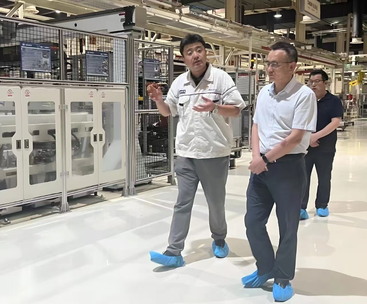 程立兵一行參觀了解放動力惠山基地,現(xiàn)場學(xué)習(xí)了智能制造、精益管理和安全生產(chǎn)等方面做法。解放動力惠山基地以“超級綠色”“超級智能”“超級精益”三大特性展示了其高標(biāo)準(zhǔn)和先進(jìn)性,致力于打造“世界領(lǐng)先的重型發(fā)動機(jī)智能制造基地”,將精益化和綠色化貫穿生產(chǎn)全過程,實現(xiàn)工廠運(yùn)行管理智能化。智能制造車間里忙碌的機(jī)器人、自動AGV物流小車、智能立體庫、綠色熱試線等引人注目,程立兵一行表示解放動力在智能化改造、數(shù)字化轉(zhuǎn)型、探索綠色低碳可持續(xù)發(fā)展等方面對公司具有較強(qiáng)的借鑒和啟示意義。